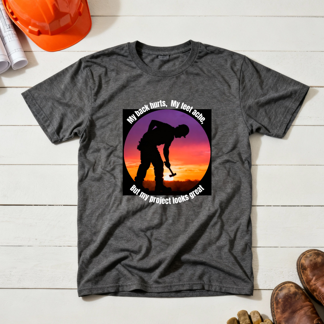 My back hurts, My feet ache but my project looks great Construction Humor Unisex Jersey Short Sleeve Tee